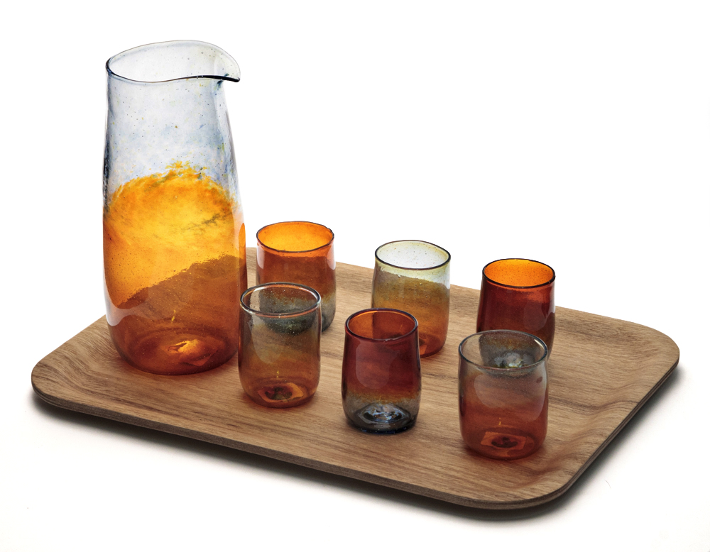 Sunset Liqueur Set (Pitcher, 6 glasses, teak tray) | Sunset Liqueur Set (Pitcher, 6 glasses, teak tray)